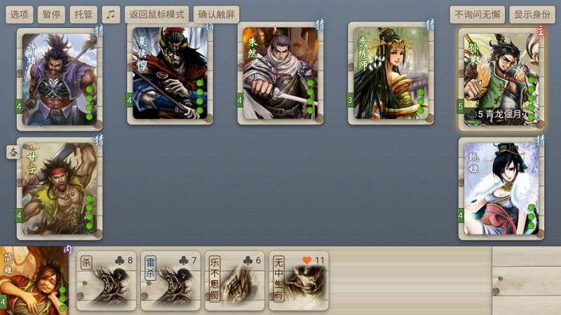 一局三国杀多则三、四十分钟,少则十几分钟。轻松自在,大可在公司午休时来上一局。是做一名羽扇轻摇,指点江山的谋士,还是做一名勇冠三军,冲锋陷阵的猛将,任由玩家选择。