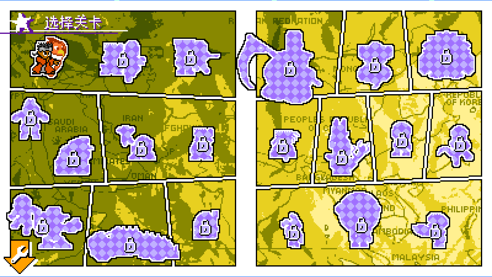 游戏开始选择关卡,目前版本从阿布德尔到瓦姆乌一共31个关卡可任意选择;